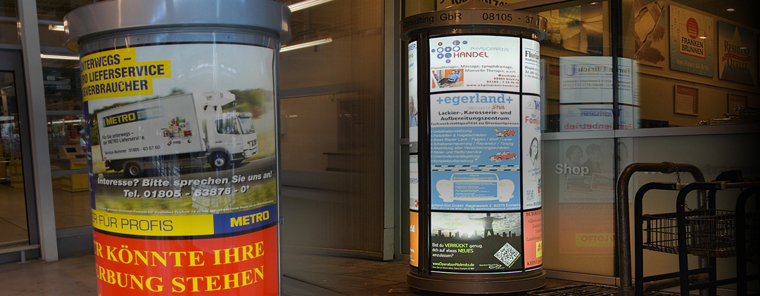 Der starke Rückgriff auf hochwertige Präsentations-Werbeträger ist eine Entwicklung, die sich in den kommenden Jahren noch verstärken wird, trotz rückläufiger Ausgaben – z.B. in der klassischen Plakatwerbung. Durch Ihre Exklusivität treffen sie den Nerv der Zielgruppe und sind damit ein werbewirksames Medium. Profitieren Sie von diesem Trend. Unsere modernen Werbemedien steigern Aufmerksamkeits- und Kontaktwerte für Ihre Produkte und Dienstleistungen. Ein optimales Kosten-/ Nutzenverhältnis und geringe Streuverluste sprechen für den Einsatz unserer Werbedisplays.